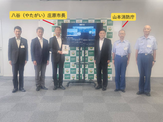 今日は、備北地区消防組合、庄原市に60周年記念品を贈呈しました。